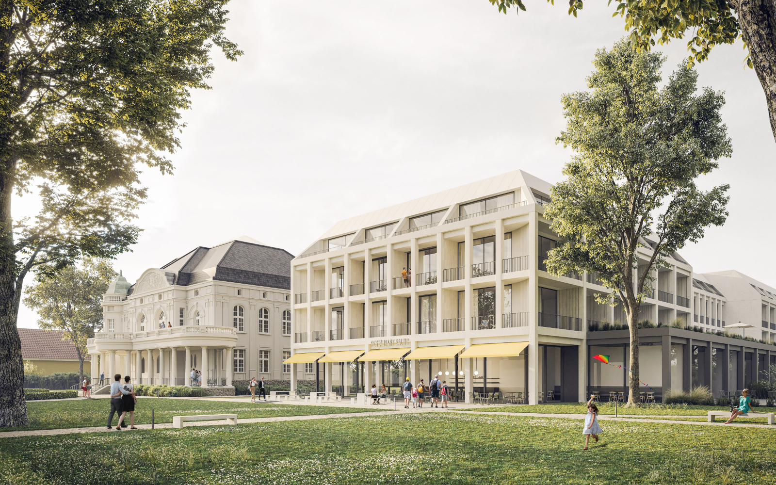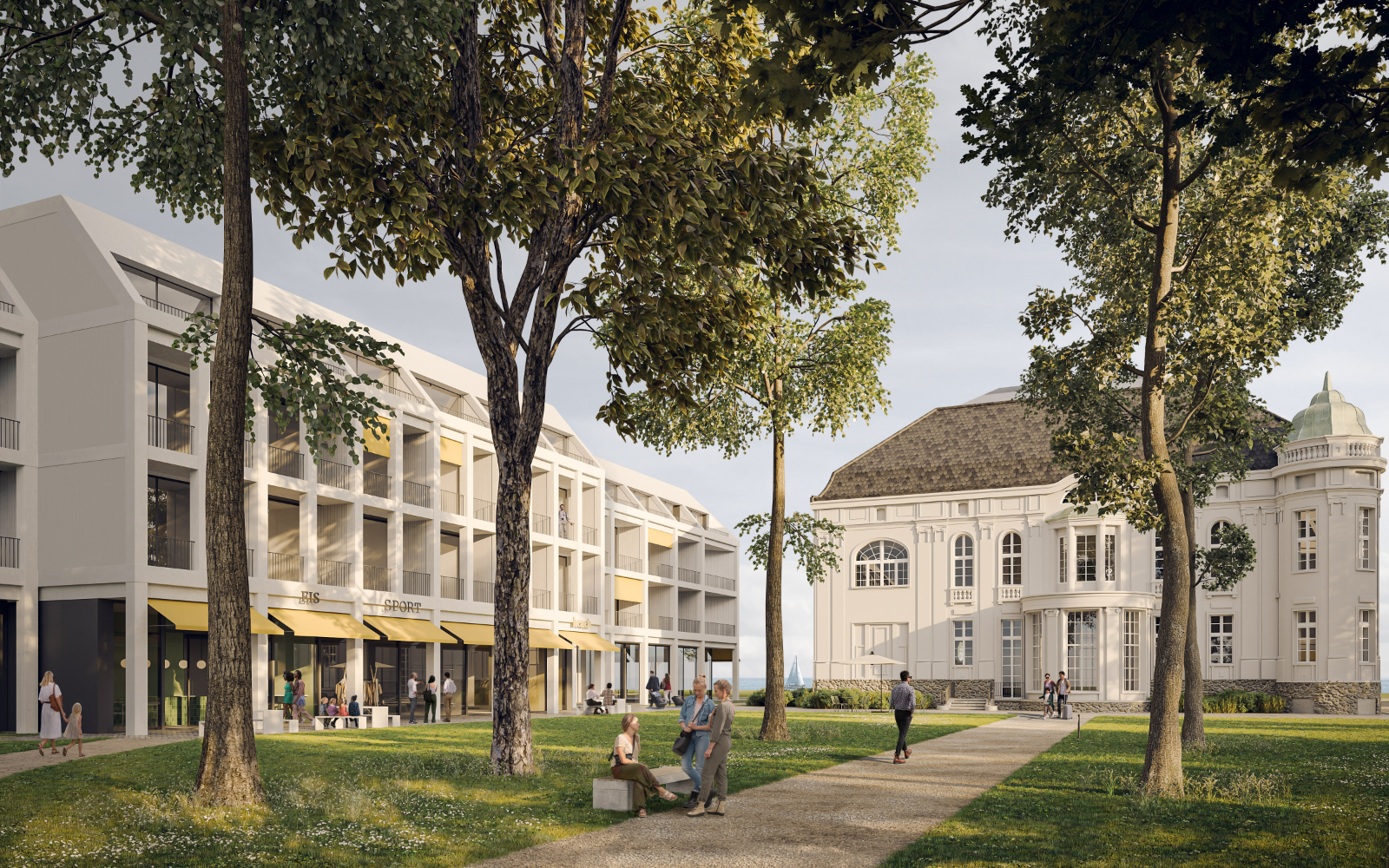 Ein modernes Hotelkonzept sollte die historische Villa in Kühlungsborn neu beleben. Unser Vorschlag sah einen respektvollen Neubau vor, der sich harmonisch integriert und öffentliche Bereiche im Erdgeschoss bietet, die den umliegenden Park beleben.